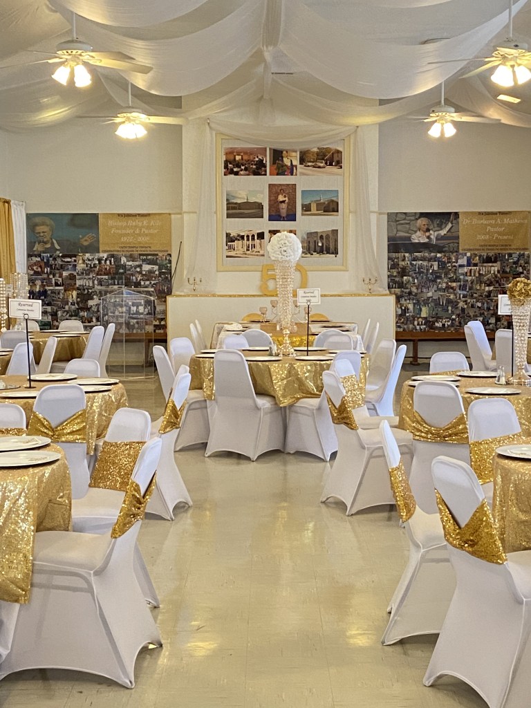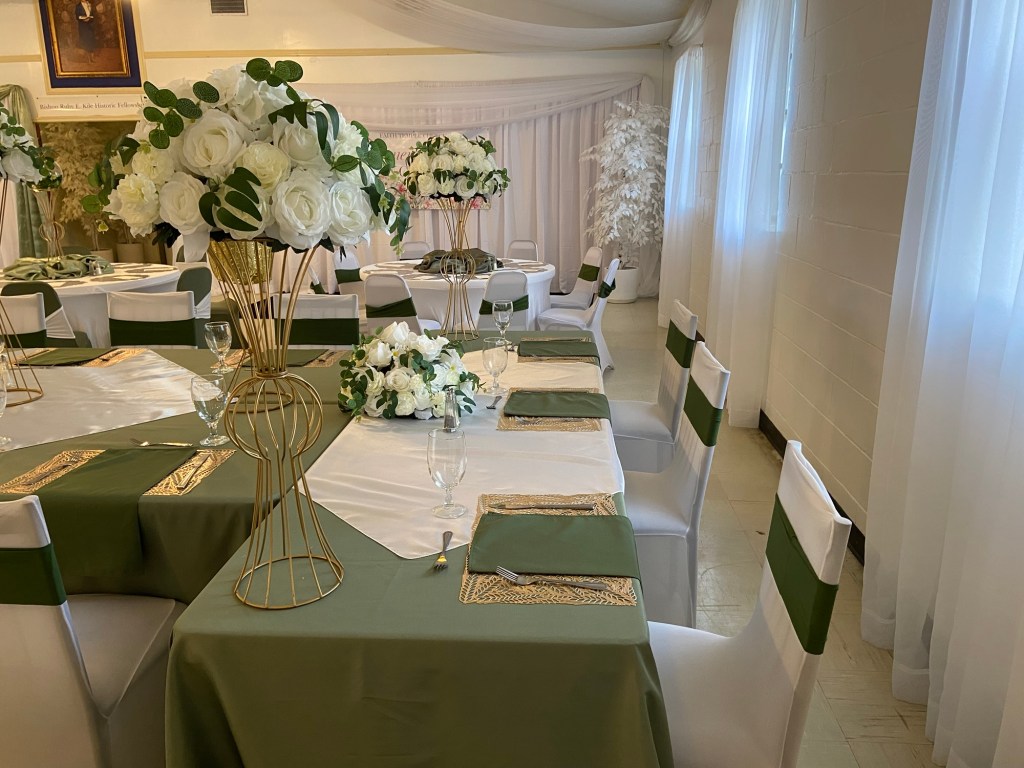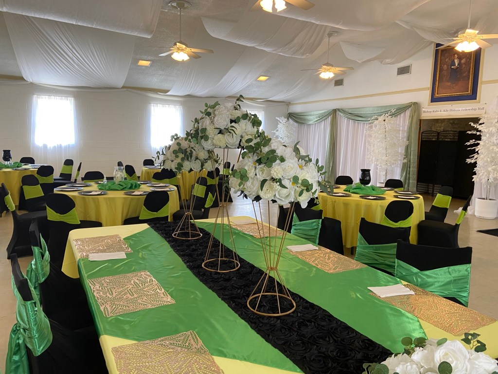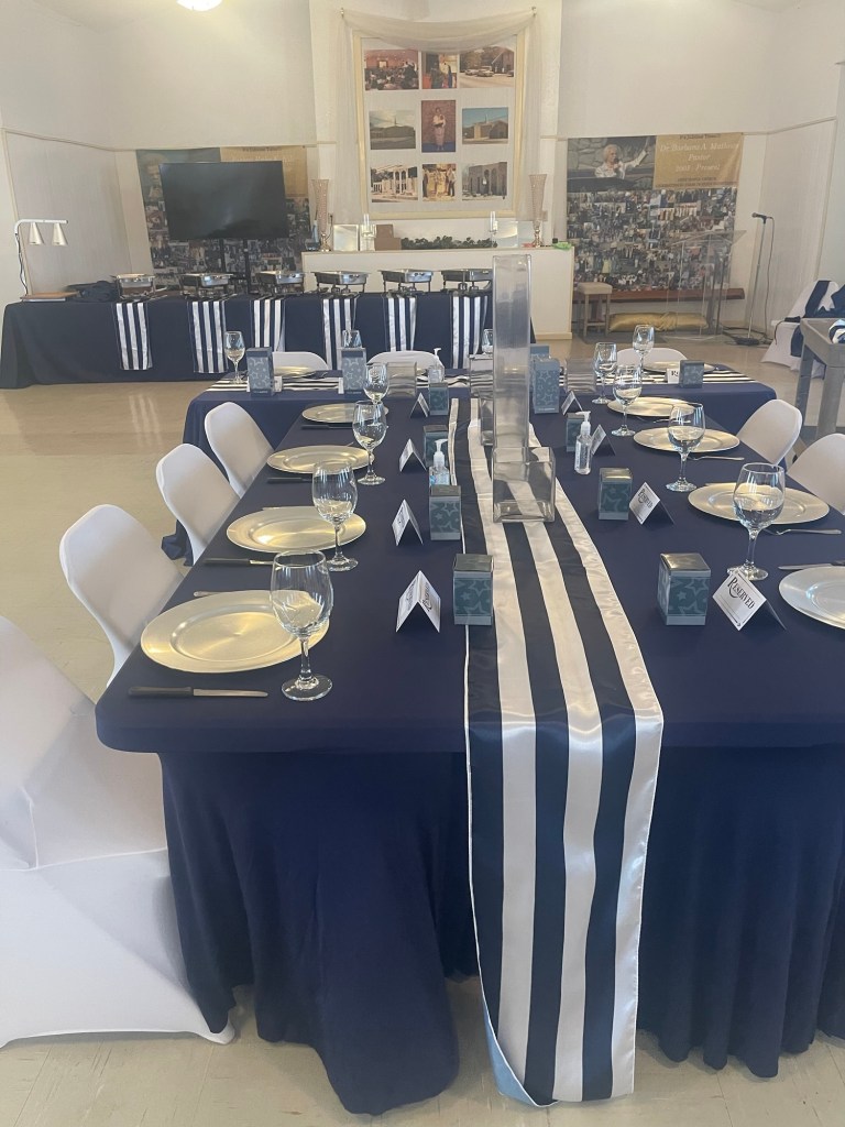 Faith Temple Church’s men’s fellowship, organized and awesome luncheon for the men young and old. K and D by Joyce decorated and catered the event with elegance and comfort, including a delicious pork loin wrapped in bacon and airplane chicken and side dishes of saffron rice, cabbage, and smoked sausage and more!